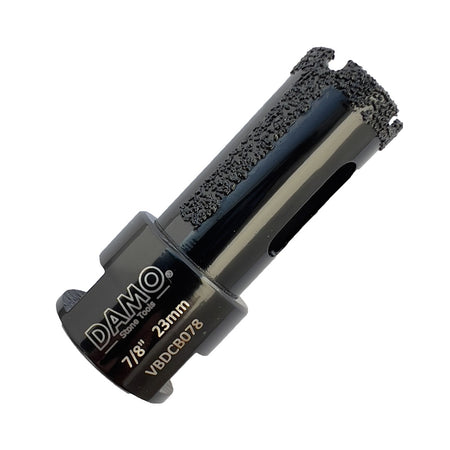 DAMO® Core Bits are designed for high-speed angle grinders with a 5/8"-11 spindle. Using advanced Vacuum Brazed Technology, they offer exceptional cutting performance and can easily drill through 1-1/4" granite or engineered stone countertops. Ideal for faucet-mounting holes in countertops and vanities, they are also suitable for construction tasks requiring holes for water, gas, or electrical piping in stone, concrete, or ceramic tile.